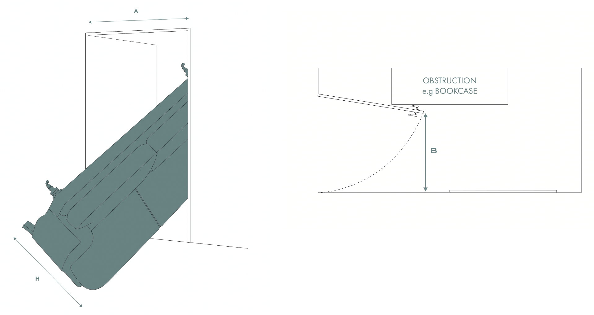 If there is a bannister that the sofa needs lifting over, you will need to check that the distance between the bannister and the ceiling is greater than the depth of the sofa. Remember again to take into consideration any ceiling lights that may be an obstruction.